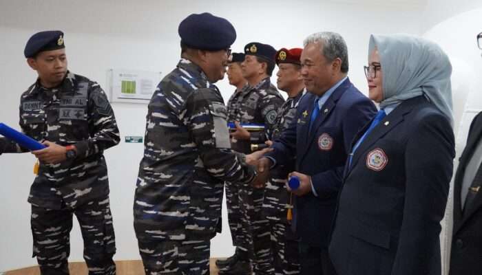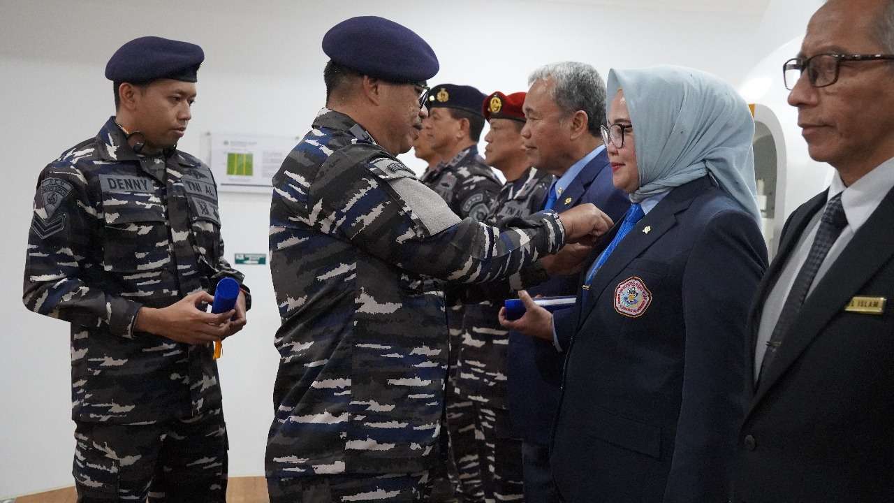 Surabaya, Indonesiajayanews 7 Oktober 2025. Wakil Rektor I Dr. Widyastuti, drg., Sp.Perio. dan Wakil Rektor III Laksamana Pertama (Purn) Dr. Toto Dwijaya Saputra, S.T., M.Si(Han)., M.Tr.Opsla. menerima Brevet Kehormatan Kesehatan Penyelaman dan Hiperbarik yang disematkan langsung oleh Kepala RSPAL dr. Ramelan, Laksma TNI dr. Imam Hidayat, Sp.S., FINA., bertempat di Lakesla, Surabaya, Selasa (7/10). Penganugerahan brevet ini menjadi salah satu rangkaian kegiatan dalam memperingati Hari Kesehatan TNI Angkatan Laut Tahun 2025.